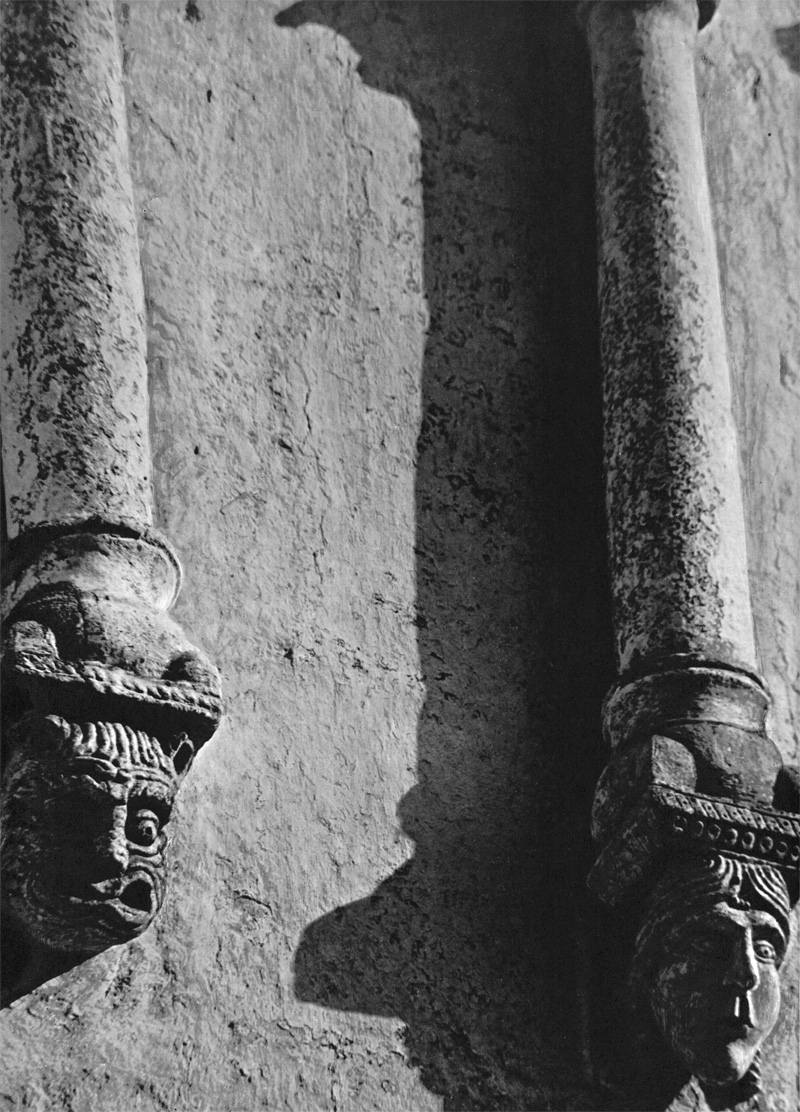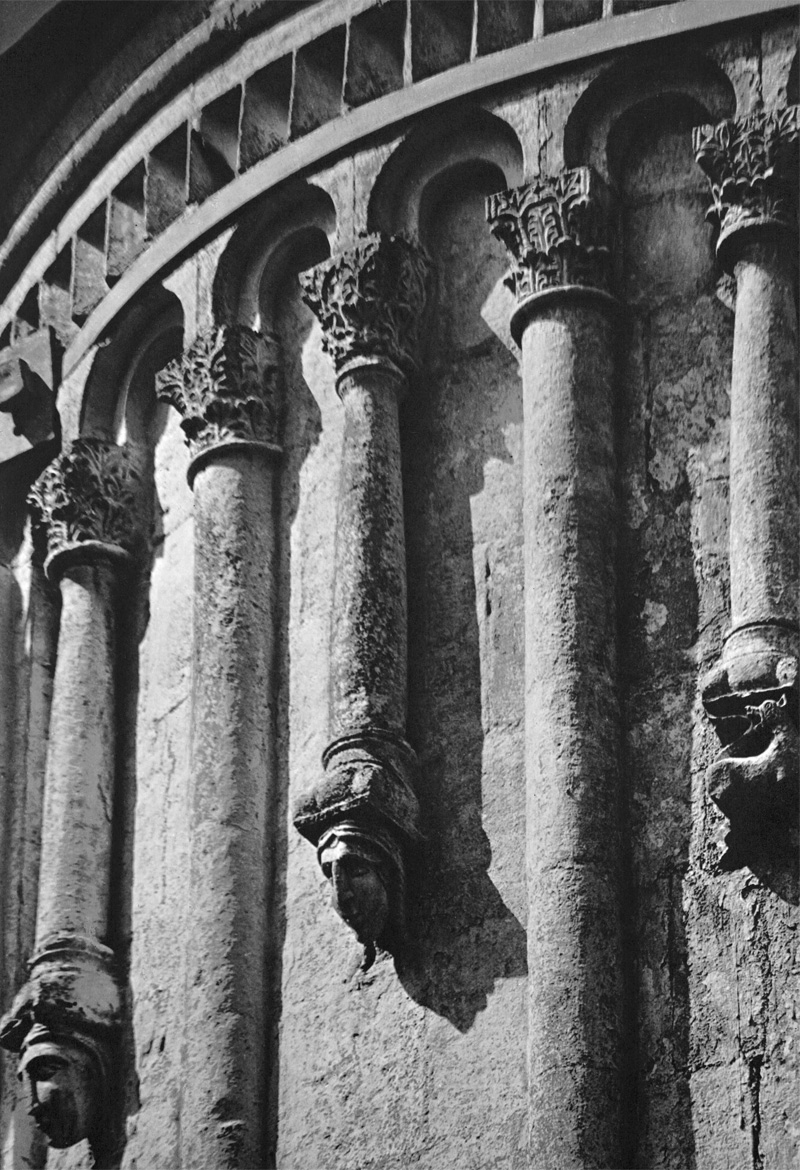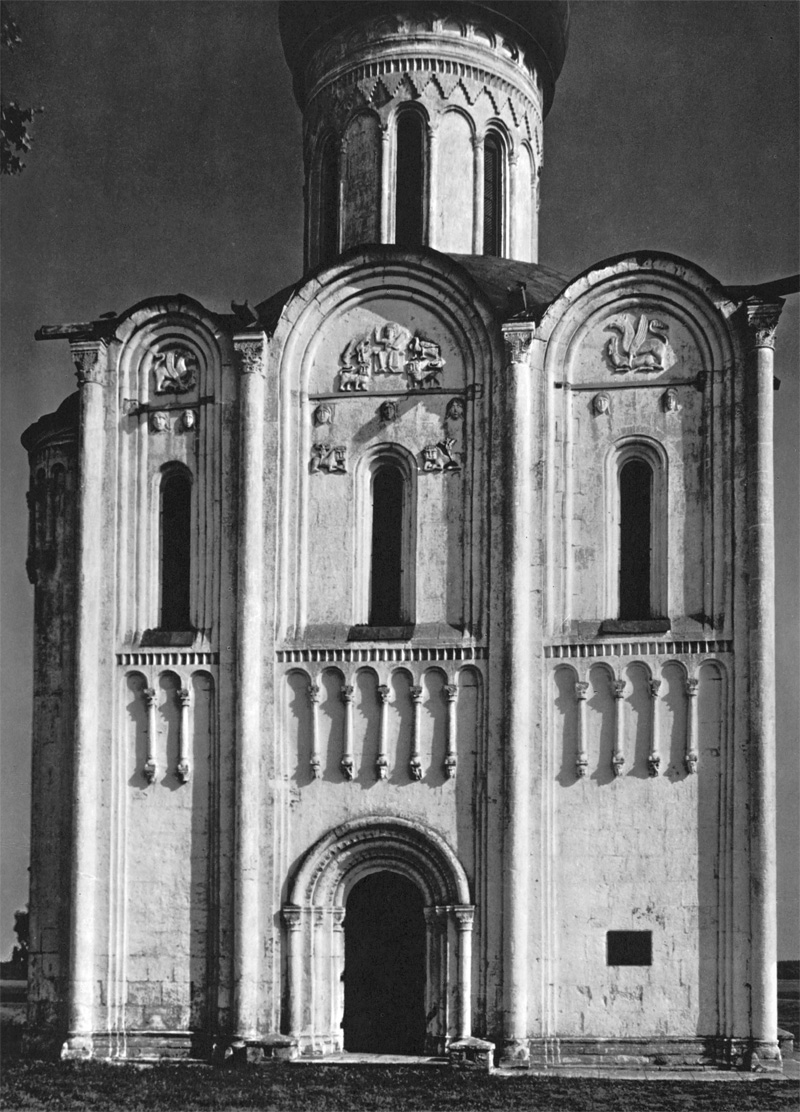 Уместно вспомнить здесь фронтисписы позднейших русских рукописей, где среди узорного плетенья, заполняющего тело изображенного храма, вдруг проглянет силуэт невиданной птицы или морда диковинного зверя. Храм символизировал собой мироздание, и фантазия художников стремилась отыскать в нем место для реальных красот. Таким образом, уже в самом декоративном начале владимиро-суздальской пластики заложено определенное видение мира, понимание его чувственной прелести и восхищение ею, то наивное и искреннее изумление перед богатством и внутренней стройностью вселенной, которое стоит в преддверии ее познания и без которого последнее невозможно. Лаконичнее всего это мироощущение сформулировано в поэтических вопросах и толкованиях «Беседы трех святителей»: «Что есть дивнея всего человеку? — Небо и земля дивно и все дело Вышнего» [Памятники старинной русской литературы, издаваемые гр. Кушелевым-Безбородко, вып. III. СПб., 1860, стр. 177.].