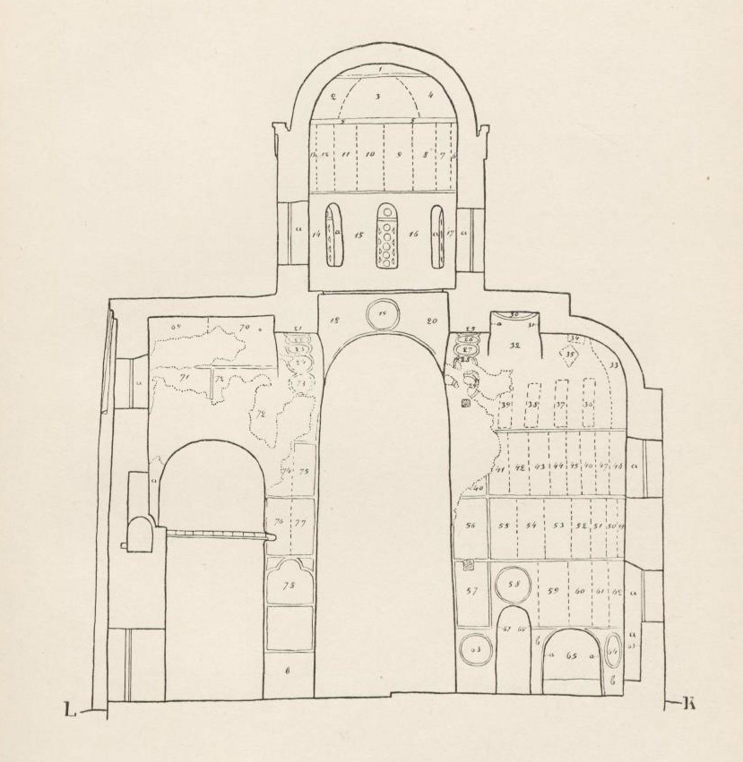 В настоящем издании представилась возможность дополнить общее количество этих снимков еще одним, дающим общий вид росписи алтарной апсиды, исполненным по весьма редкому негативу (табл. XXIX). Принимая во внимание то значение, которое имеет для научного анализа расположение композиций в общей системе росписи, к изданию присоединен ряд разрезов с указанием на них особой нумерацией сюжетов росписи, а также перечень всех изображений и указатель общей литературы, относящейся к Нередицкой церкви.