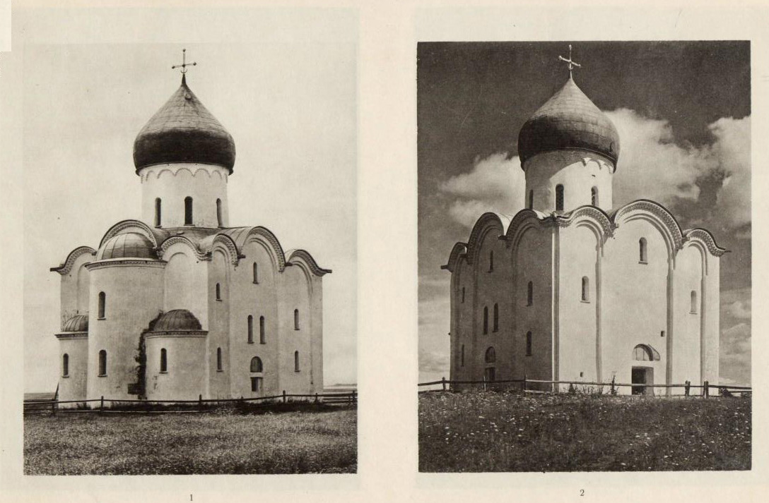 Таблица II. 1. Вид церкви Спаса-Нередицы с северо-востока (после реставрации 1904 г.). 2. Вид церкви Спаса-Нередицы с северо-запада