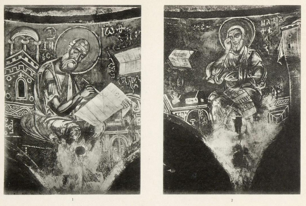 Таблица VII. 1. Апостолы: Лука и Иоанн из композиции Вознесения. 2. Апостолы: Андрей и Филипп из композиции Вознесения