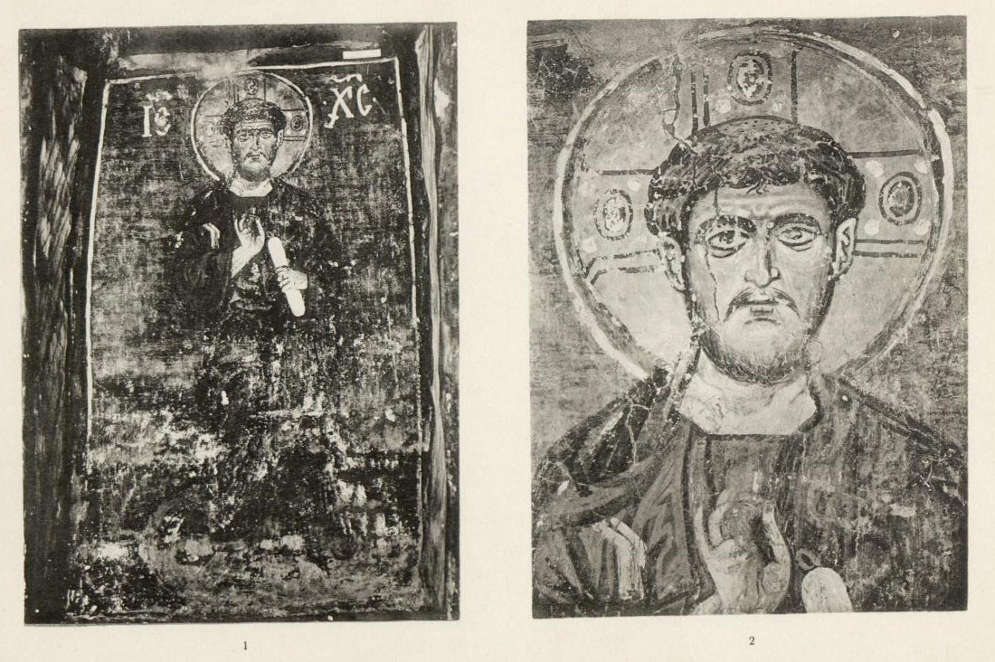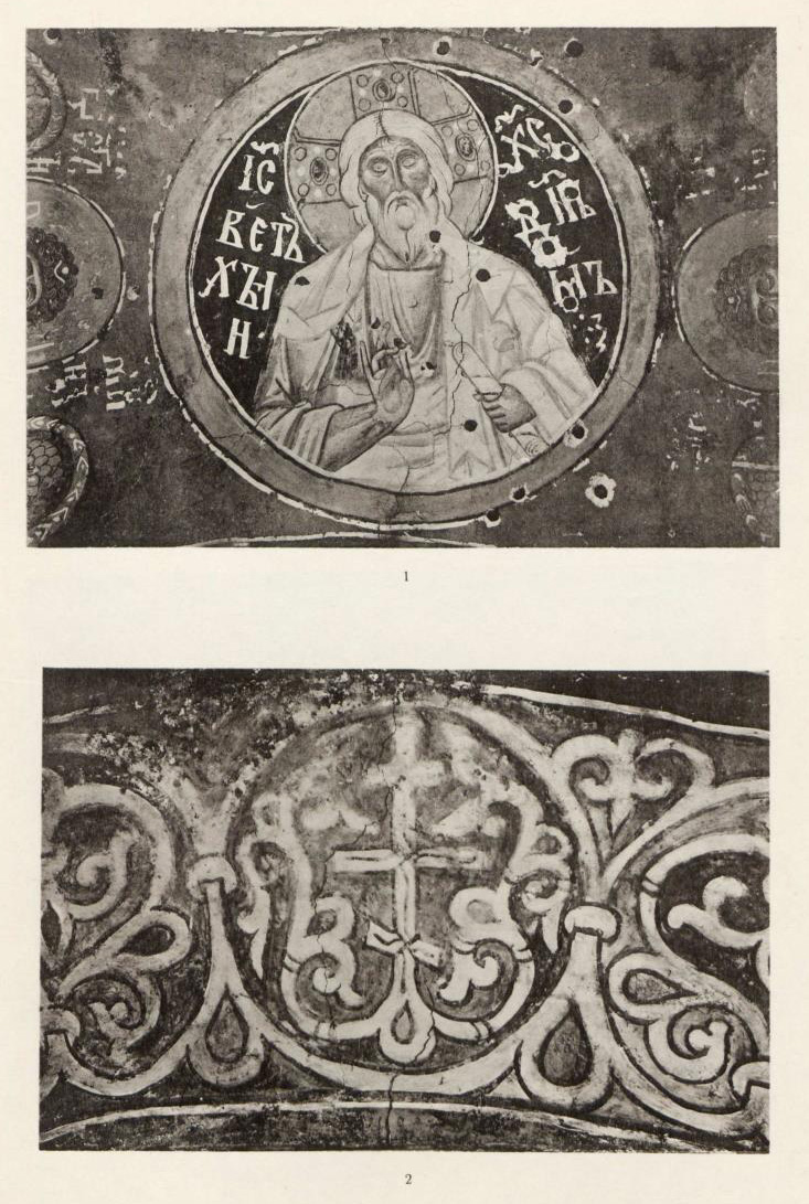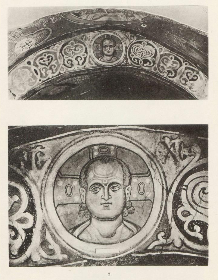 Таблица XXI. 1. Роспись алтарной арки 2. Деталь Христос Эммануил