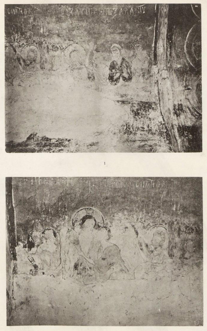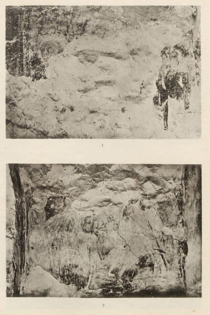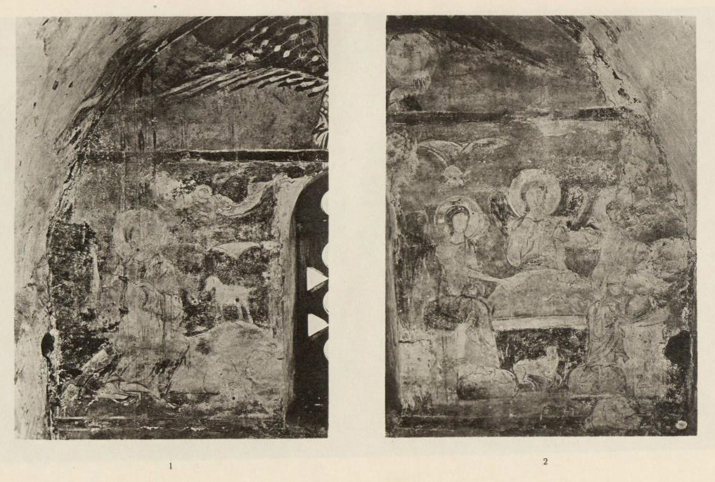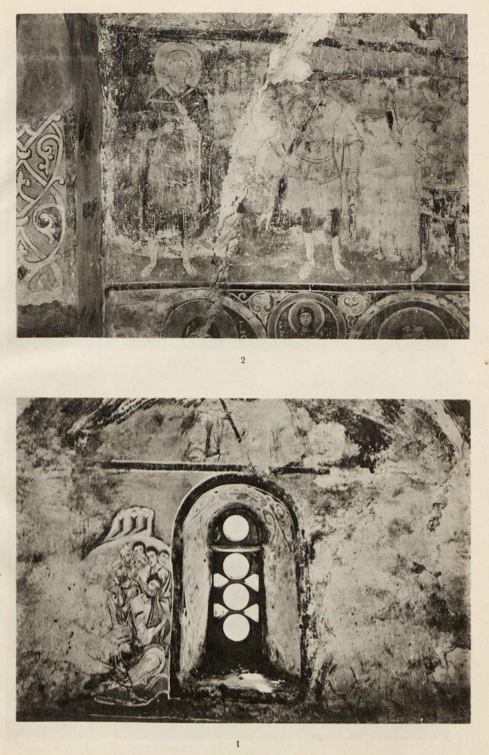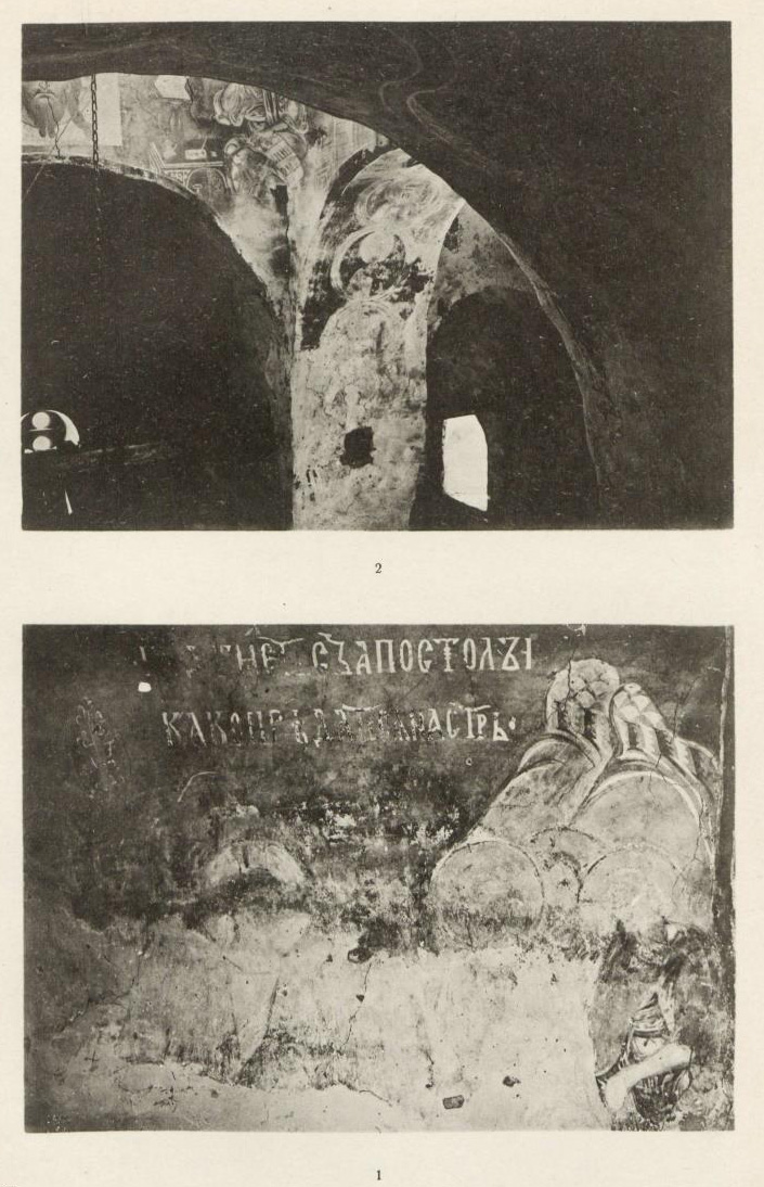 Таблица XLVII. 1. Остатки композиции в южном коробовом своде 2. Фрагмент композиции Тайной вечери в коробовом своде