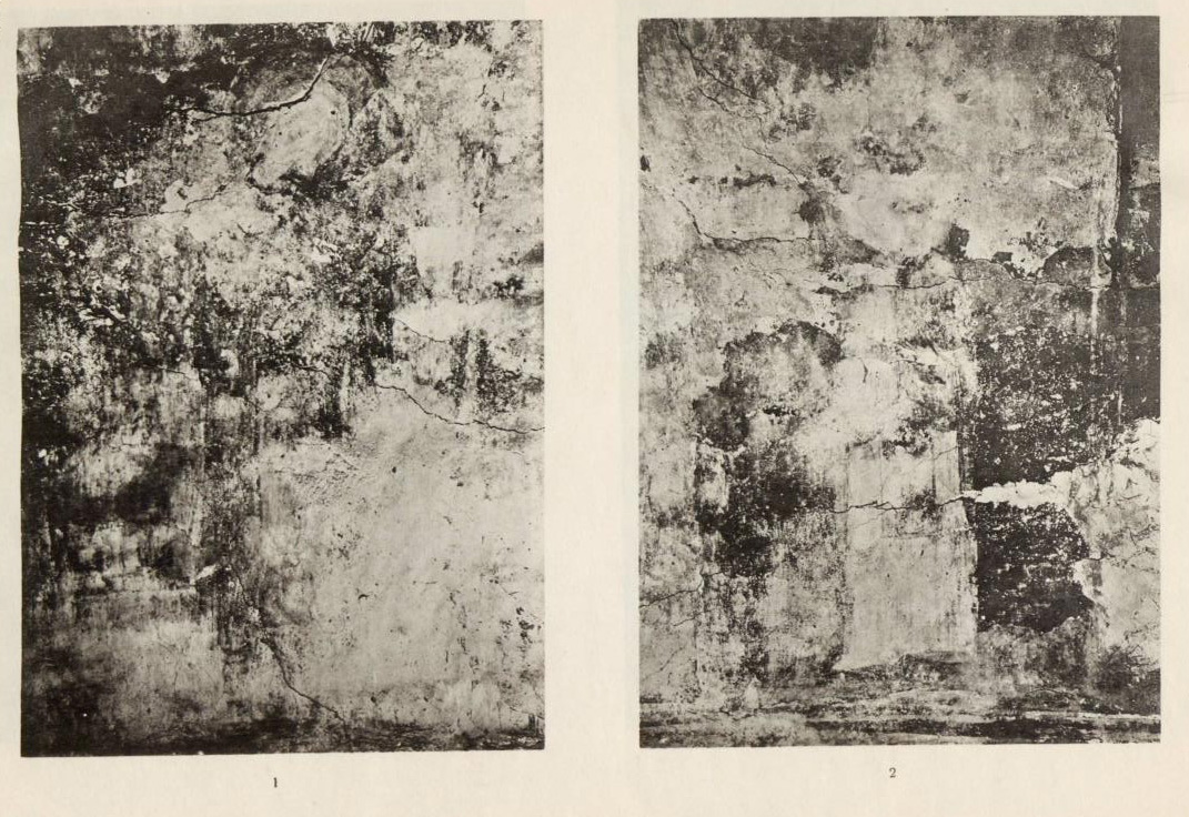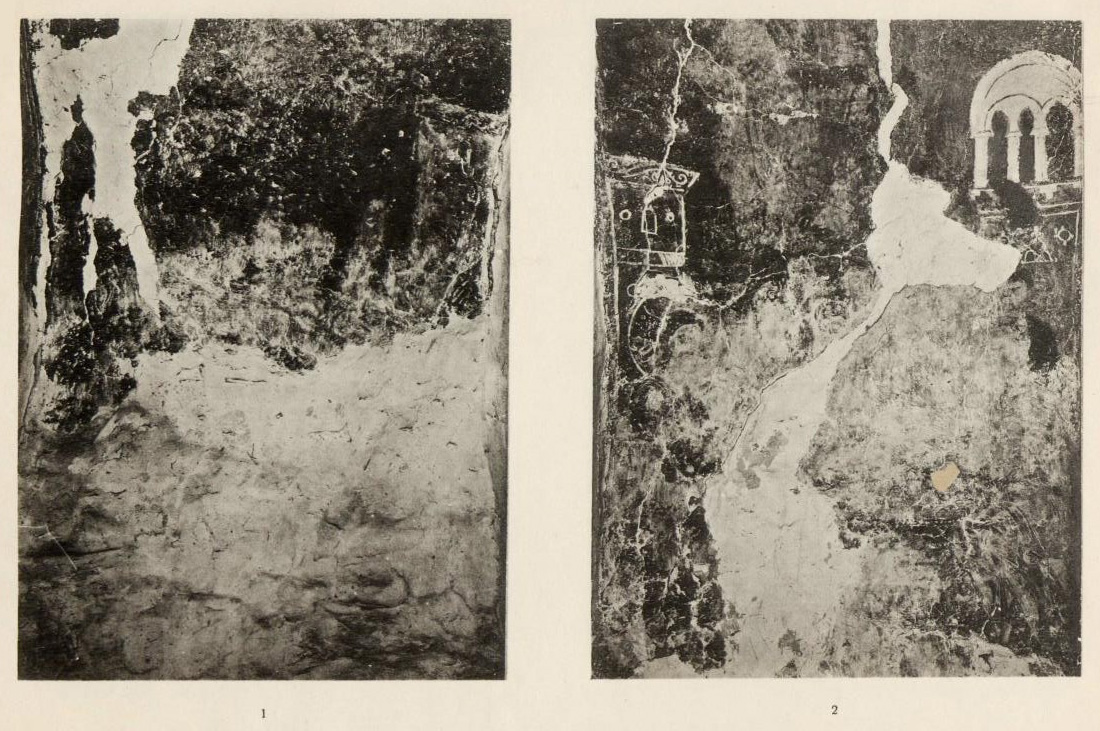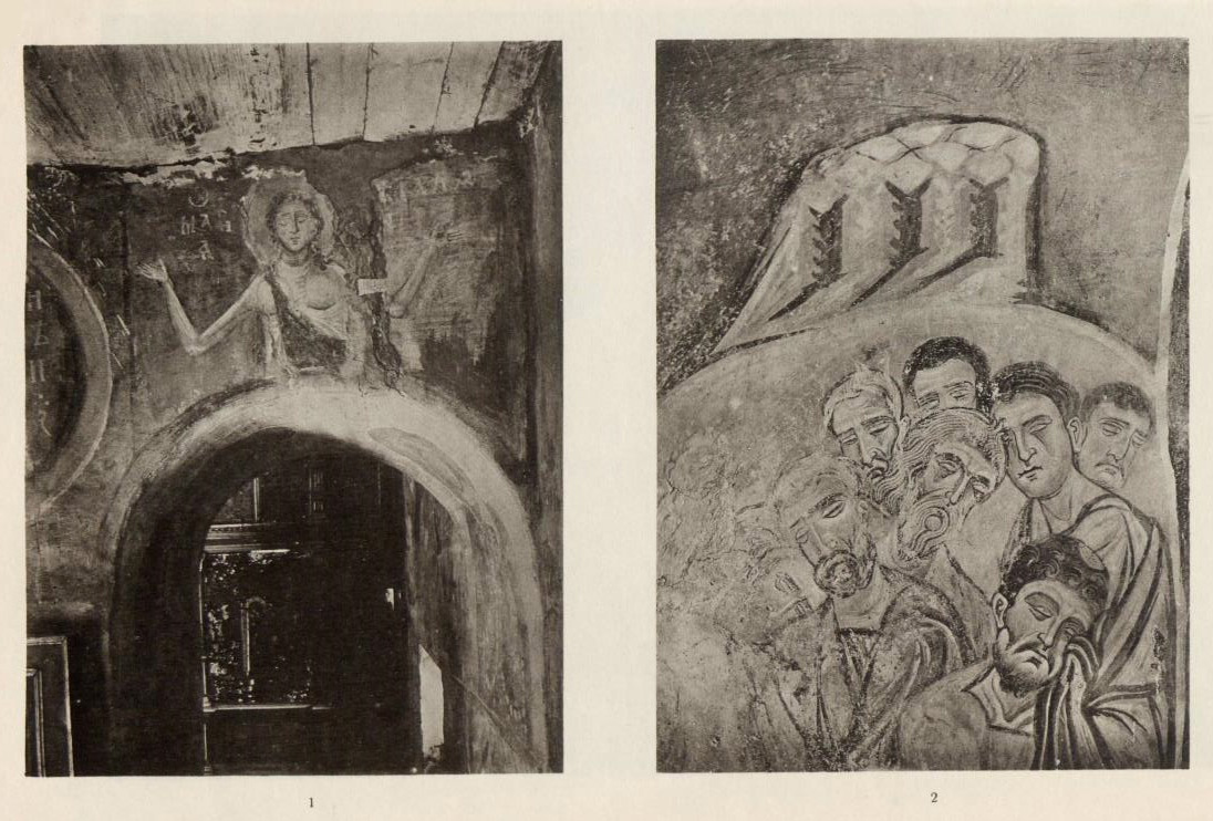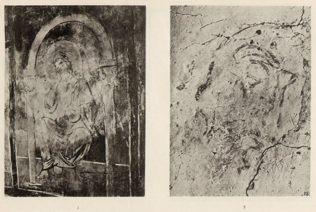 Таблица XLVII. 1. Остатки композиции в южном коробовом своде 2. Фрагмент композиции Тайной вечери в коробовом своде