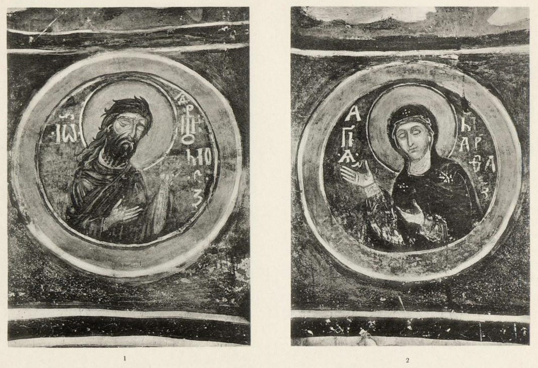 Таблица XXXVI. 1. Иоанн Предтеча из композиции Деисуса 2. Святая Марфа из композиции Деисуса