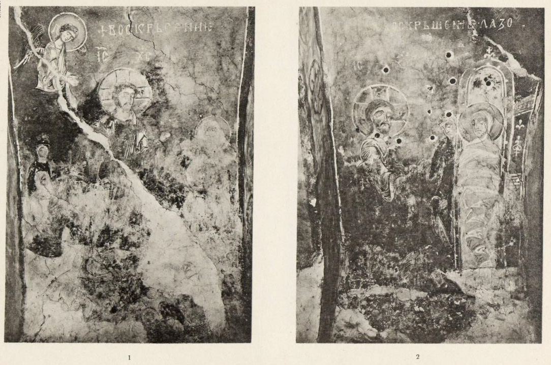 Таблица LXXIX. 1. Николай Чудотворец – наружная фреска 2. Преображение – наружная фреска 3. Успение – наружная фреска